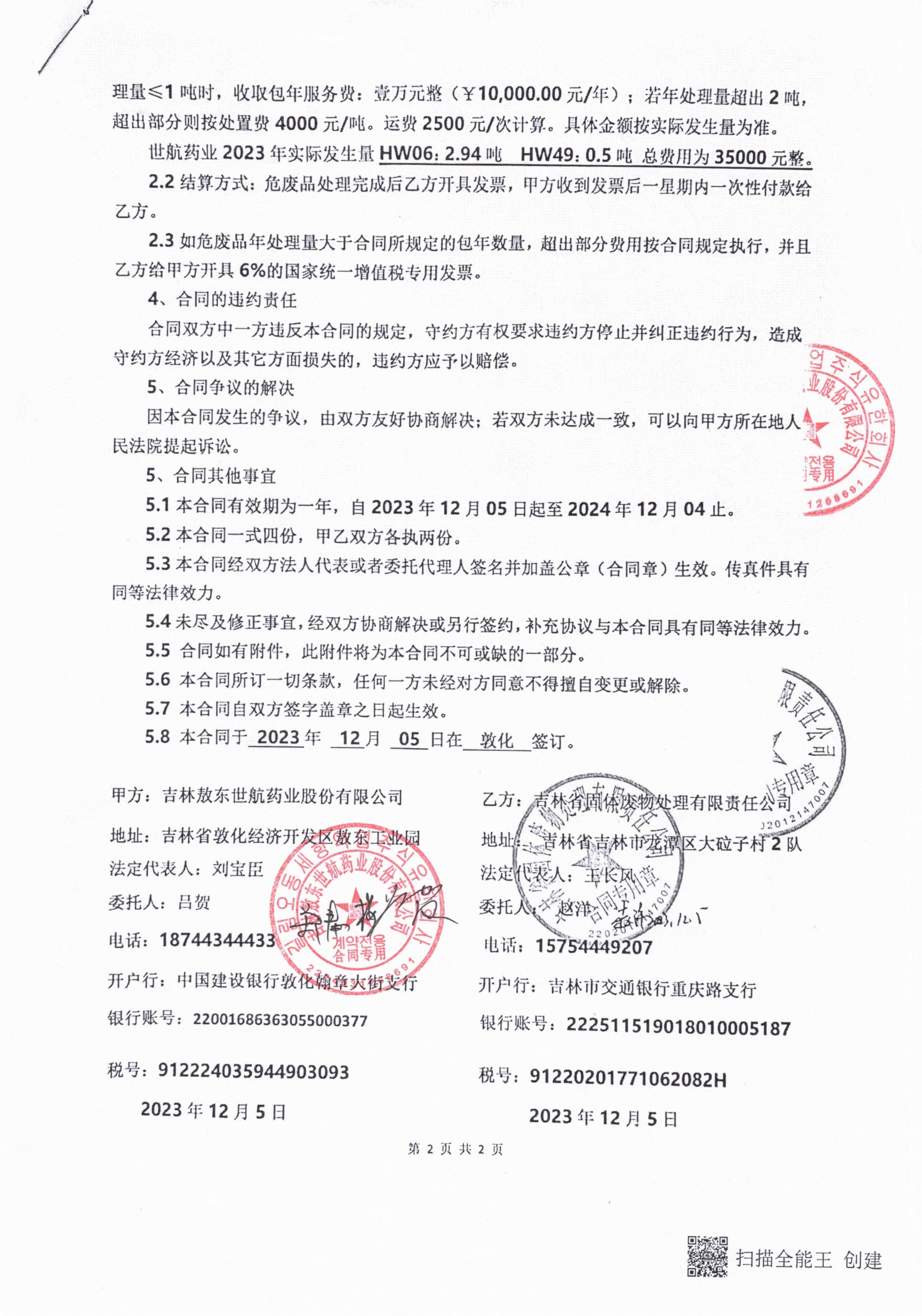 2023年危險(xiǎn)廢物處置合同
