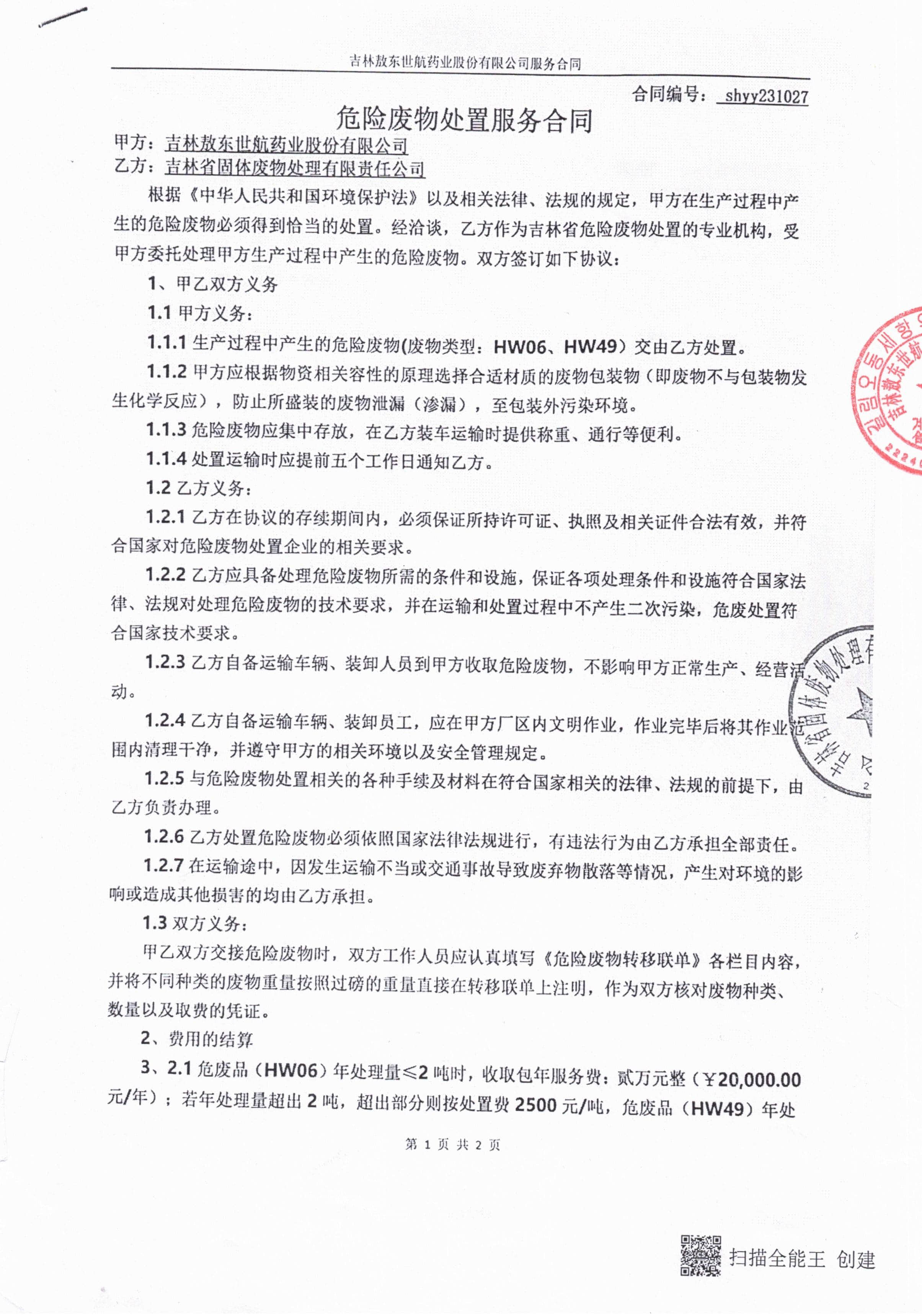 2023年危險(xiǎn)廢物處置合同